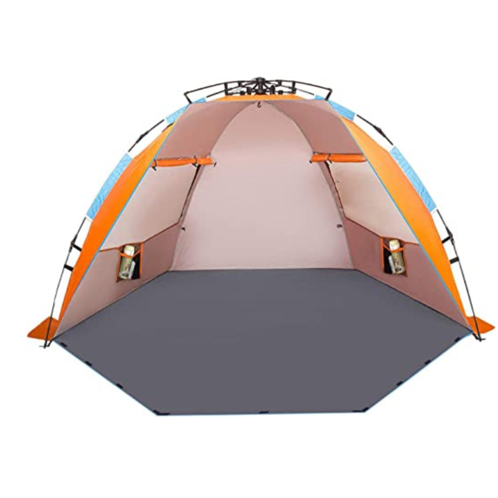 Oileus X-Large 4 Person Beach Tent Sun Shelter - Portable Sun Shade Instant Tent for Beach with Carrying Bag, Stakes, 6 Sand Pockets, Anti UV for Fishing Hiking Camping, Waterproof Windproof, Orange
