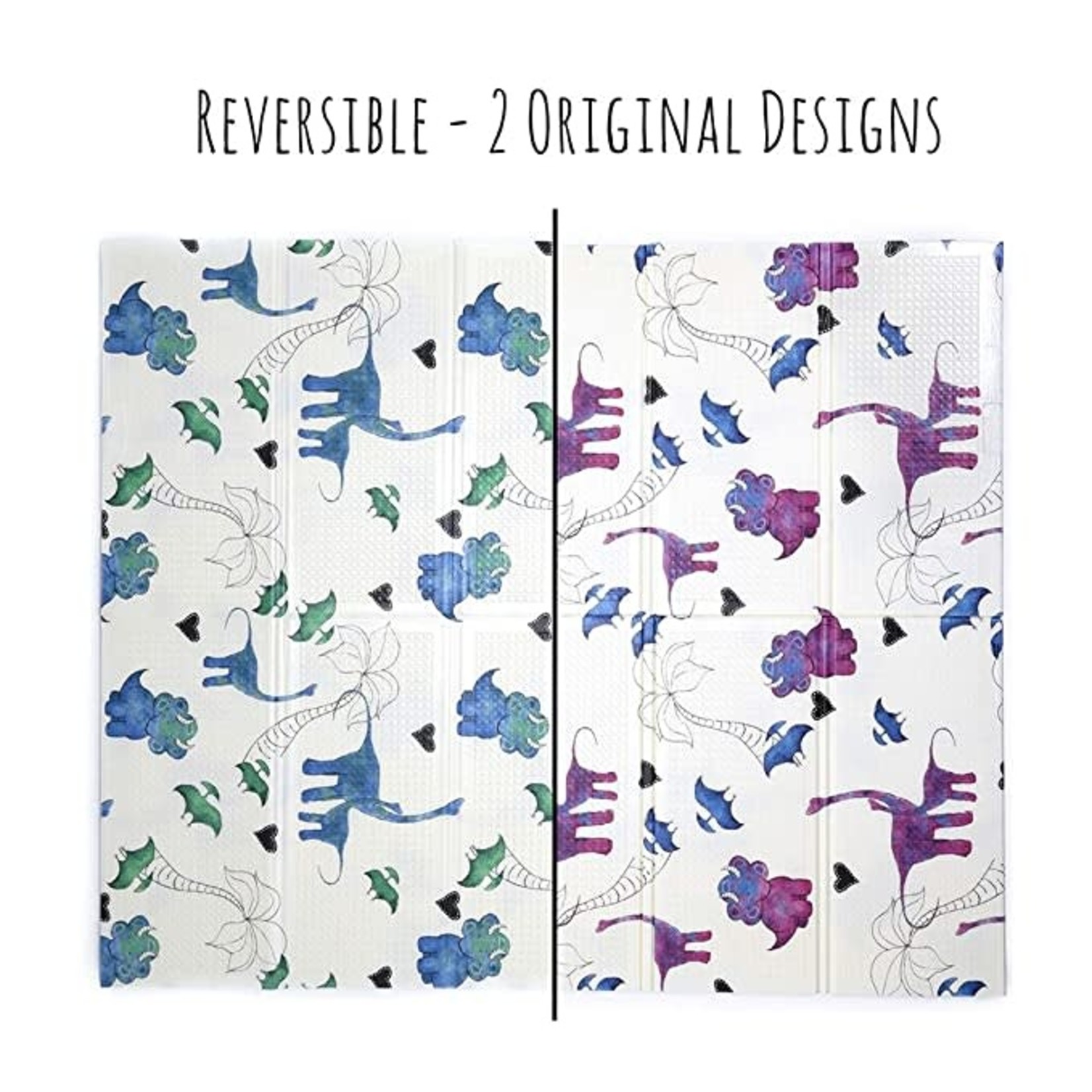 JumpOff Jo - Large Waterproof Foam Padded Play Mat for Infants, Babies, Toddlers, Play & Tummy Time, Foldable Activity Mat, 70 in. x 59 in. - Tiny Dinos